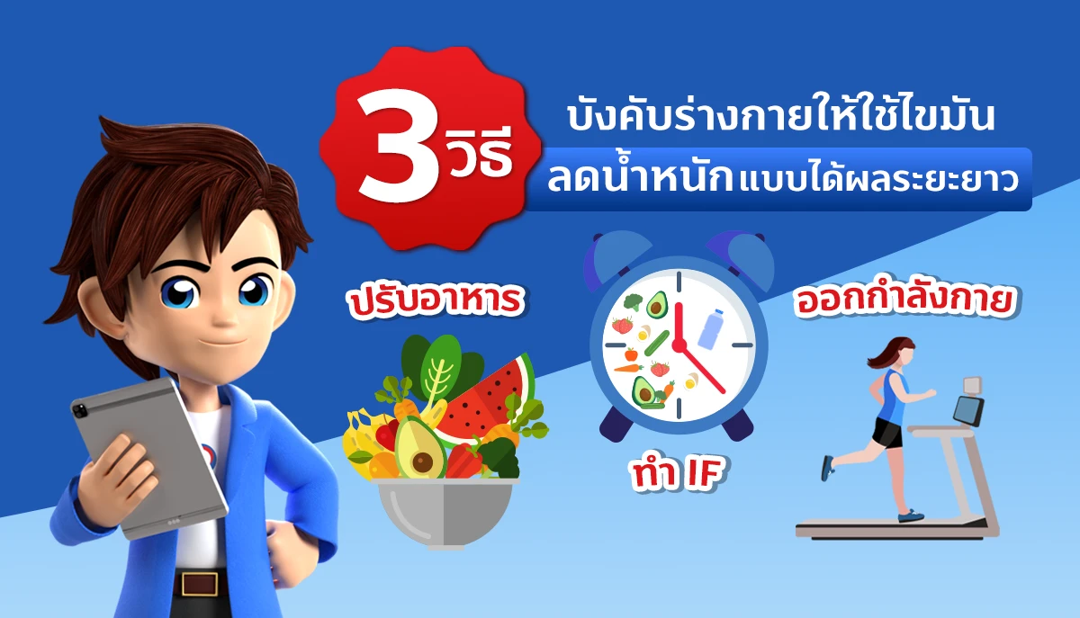 การบังคับร่างกายให้ใช้ไขมันสะสมสามารถทำได้โดยการปรับอาหาร ลดน้ำตาลและแป้ง เพิ่มโปรตีนและไขมันดี ควบคู่กับการทำ Intermittent Fasting (IF) เพื่อให้ร่างกายดึงพลังงานจากไขมันในช่วงระหว่างมื้ออาหาร และเสริมด้วยการออกกำลังกายเพื่อเพิ่มมวลกล้ามเนื้อให้ร่างกายเผาผลาญพลังงานได้มากขึ้น