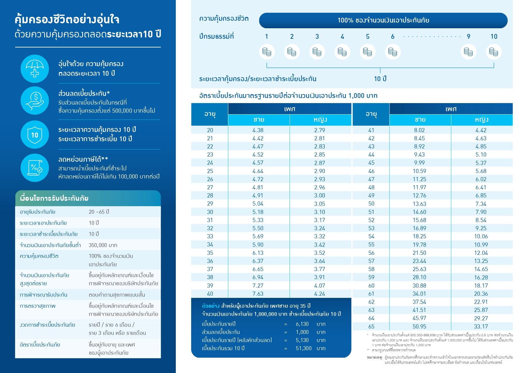 - ระยะเวลาชำระเบี้ยประกันภัย : 10 ปี